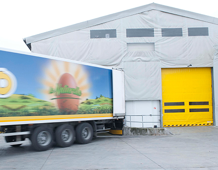 The upward opening is very fast, thanks to the self-supporting structure in galvanized steel and the tear-proof PVC sheet that counteracts the wind thrust.
