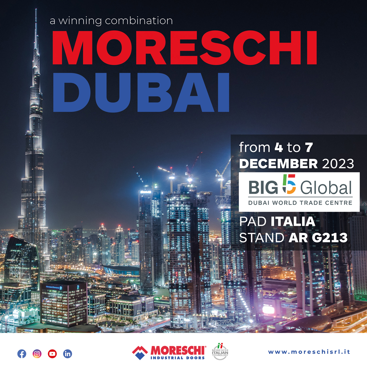 Anche quest’anno siamo lieti di comunicare la nostra presenza alla fiera Internazionale Big5 di Dubai